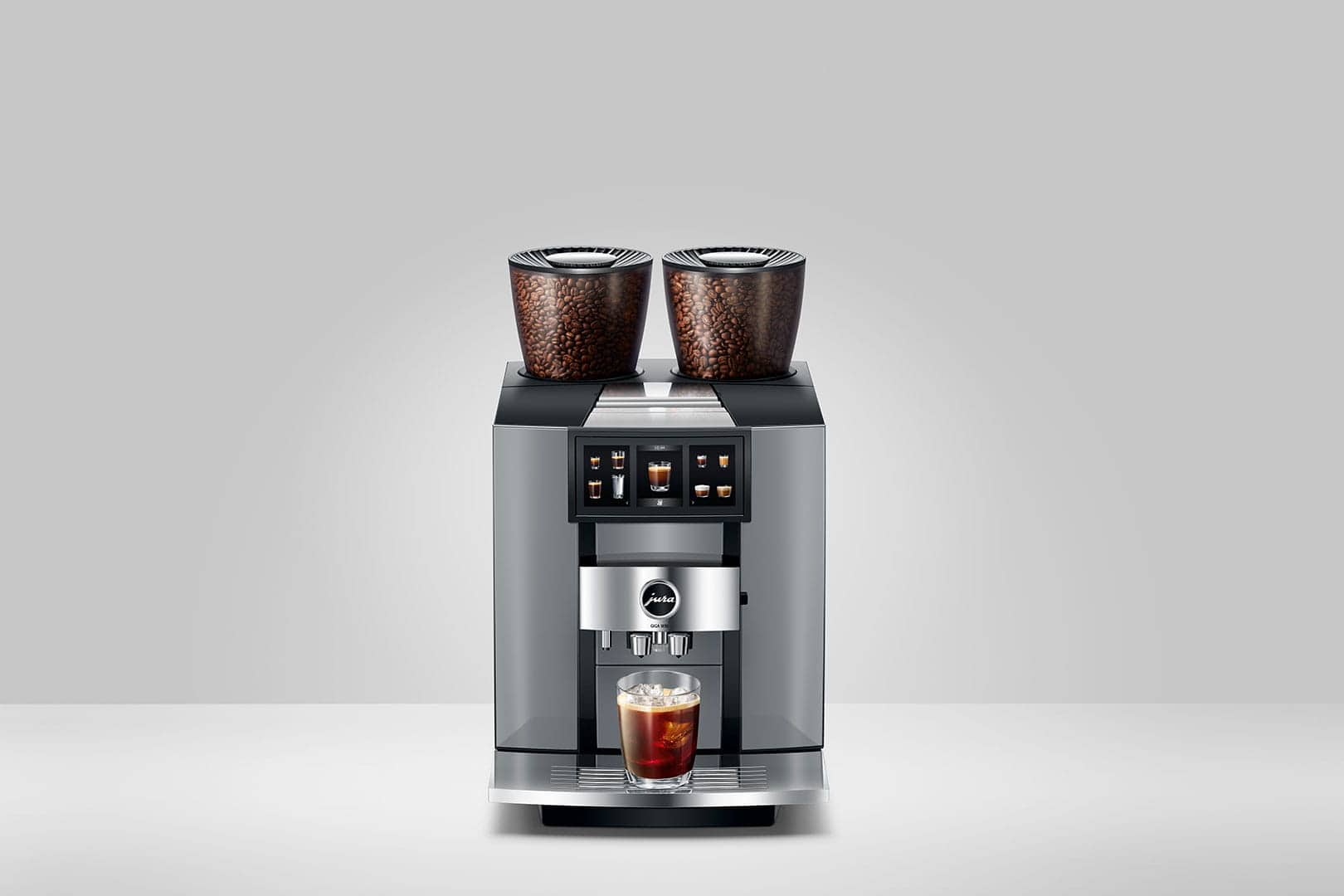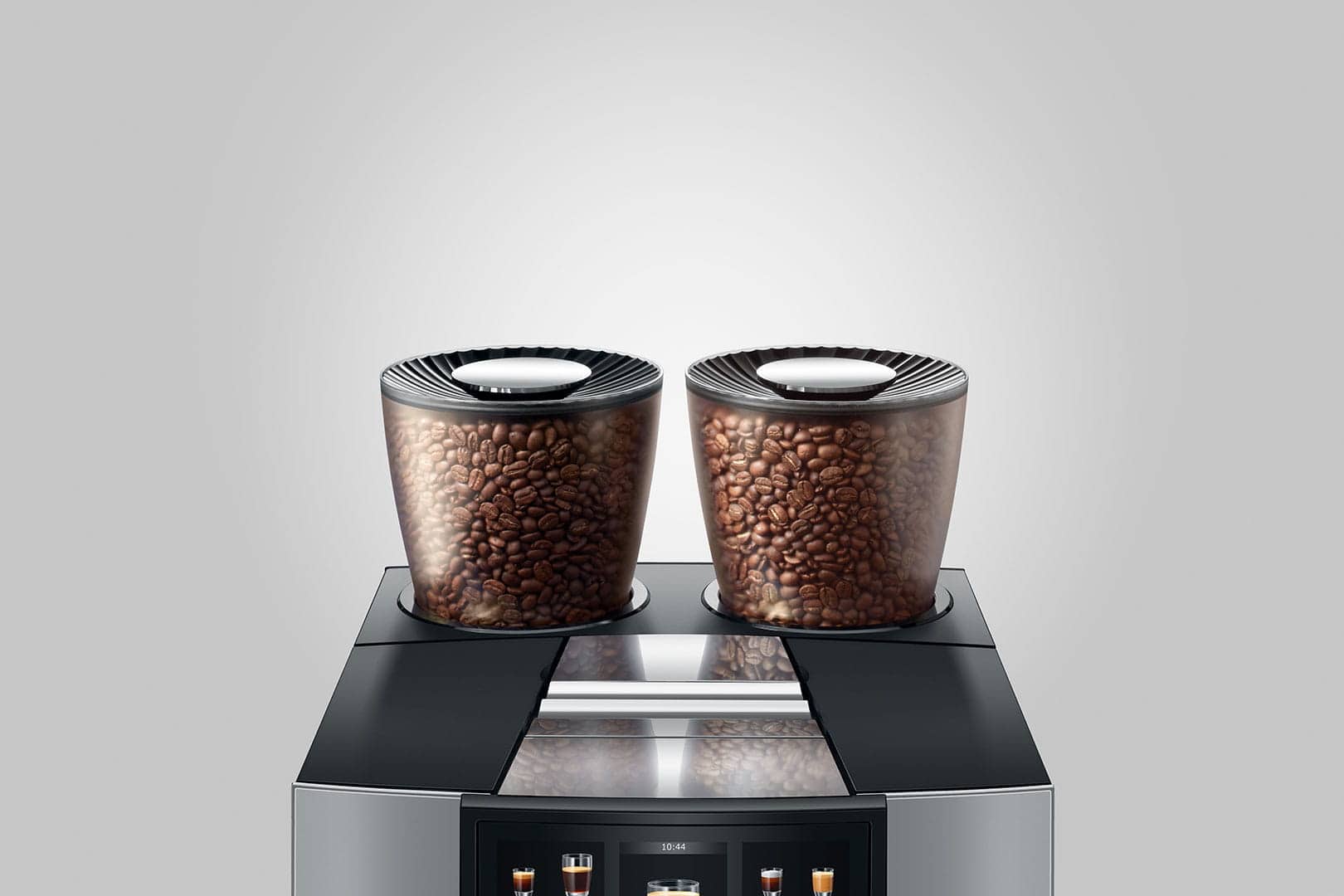 - Voor maximale professionaliteit beschikt de GIGA W10 over twee precisieslijpers met maalschijven van hoogwaardig, duurzaam keramiek. De twee bijbehorende bonenreservoirs hebben elk een inhoud van 650 gram, waardoor je voor elk kopje de ideale koffiesoort kunt kiezen. Zo geniet je bijvoorbeeld van warme specialiteiten uit een klassieke, intensere branding en koude brouwsels van een trendy, fruitige boonsoort. Altijd volgens het motto van JURA natuurlijk: vers gemalen, niet ingekapseld.