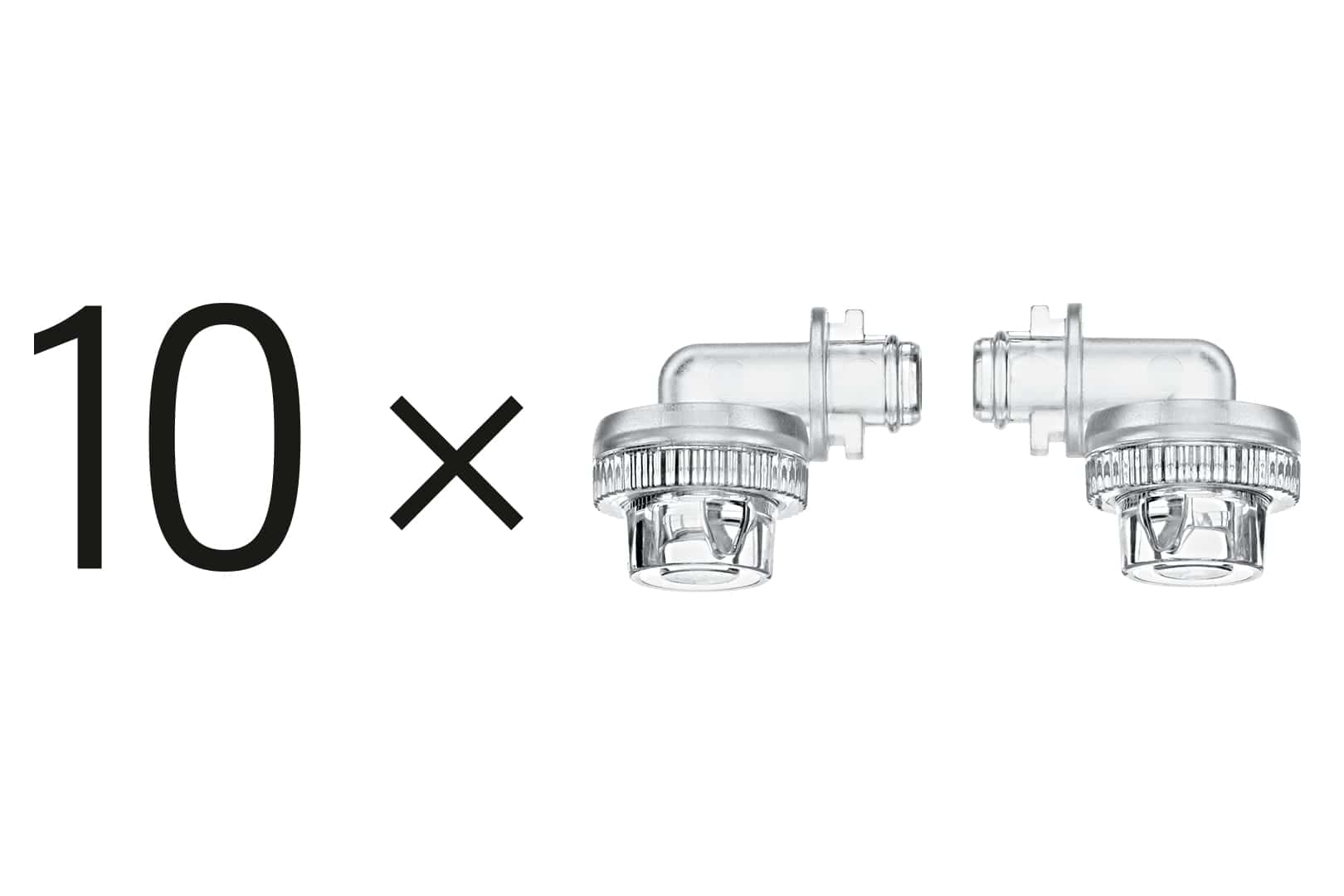 De set bestaat uit 10 x 2 vervangbare melkuitlopen, zodat beide uitlopen tien keer kunnen worden vervangen. Om hygiënische redenen adviseren wij u de vervangbare melkuitloop regelmatig (om de ca. 2 maanden) te vervangen.